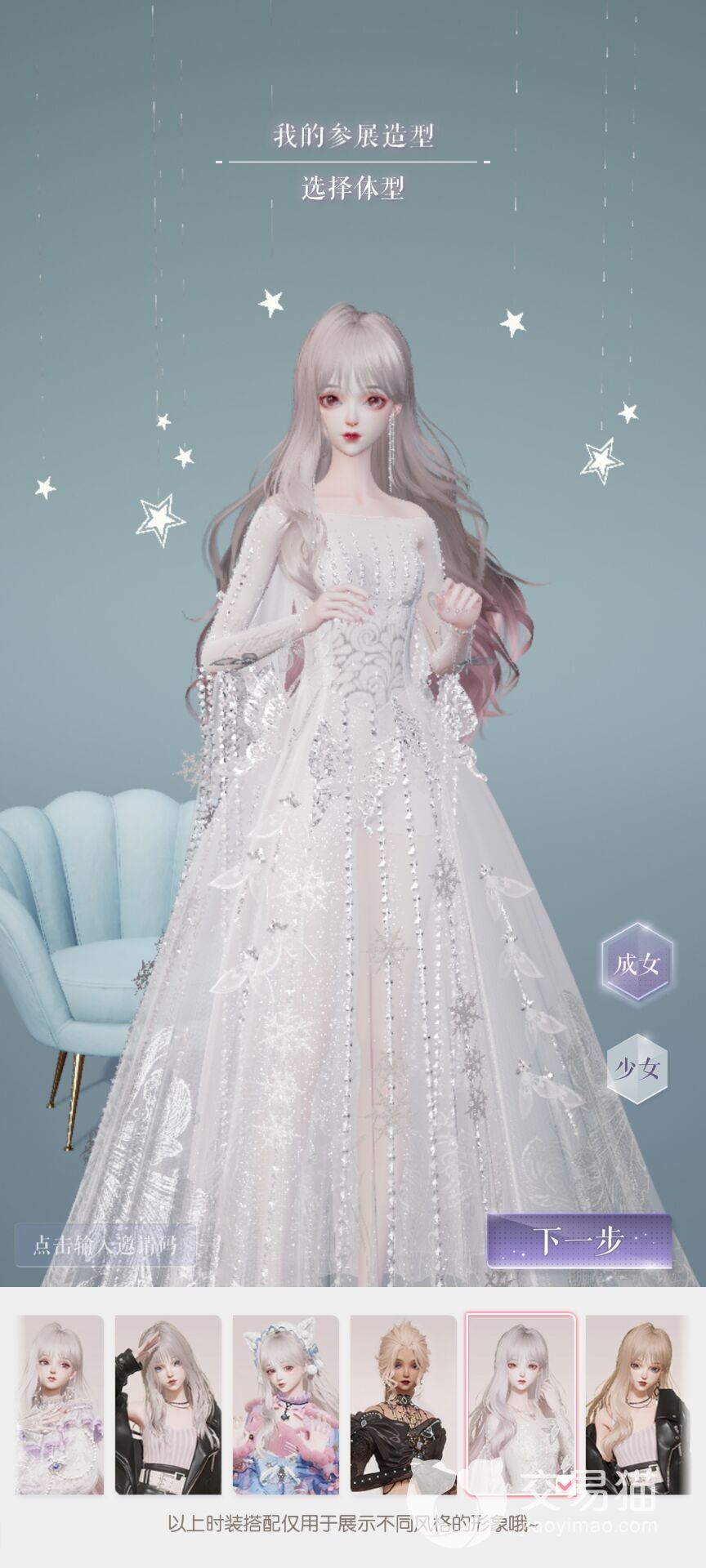 我们进入游戏界面之后,就会开始让我们选择一个体型,一个成女一个少女,我们选择成女就好了,然后上面会有一些服装可以供我们搭配的时候作为参考,选好之后就可以进行捏脸了。