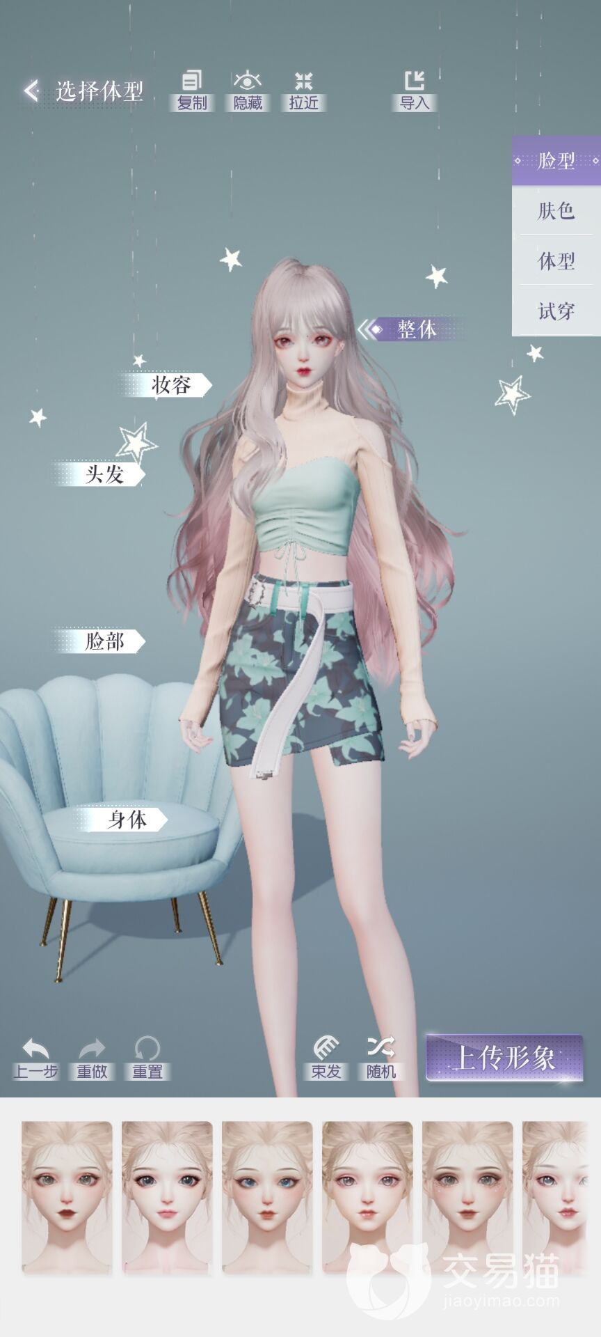 在捏到身材比例的时候,建议大家换一个可以看到肢体动作的服装,这样会更加方便,而且如果实在不想自己捏,还可以点击屏幕上方的“导入”,直接用选好的脸型,哪怕进入游戏了也没关系,游戏内会有“重塑容貌”,进去以后点击右上的“颜究生图鉴”并在里面选择“成女体型”就可以看到非常多的高颜值成女脸型啦。