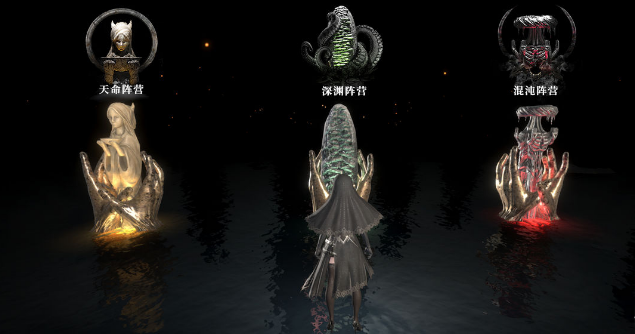 游戏中一共是有三个阵营供大家选择,一个是天命一个是深渊,最后一个就是混沌,这三个阵容在游戏中都是大家可以选择的,一个是黄色的石碑显示的就是天命,大家要是选择黄色石碑的话,天命阵营的玩家就可以加入同一个旅团,跟献祭以及救赎也有关,天命阵营的玩家战斗之后选择救赎会有奖励加成。