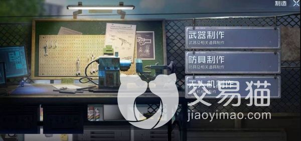 大家需要先来到该制造台面前点开设置,就能看到三个选项,第一个是武器制作,第二个是防具制作,第三个是无人机制作,大家可以先选择自己想要制作的东西,然后点进去就可以了。