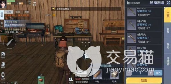 在这个游戏中若想建造一个装备,就需要大家先获取到制造台,当新手玩家进入游戏之后,会有很多的新手任务需要大家完成,完成这些任务之后,就能获取到制造台啦。