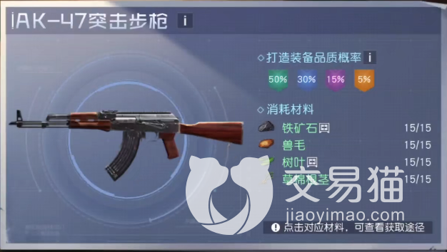 ak47是大家在游戏中可以自己制作的一把枪械,到了十级左右就会有相关的任务让大家去制作,所以大家不用提前做,在做任务的时候会赠送需要的部件给大家,制作起来的枪支大家可以直接装备使用,射速上肯定就没有AK15那么强了。
