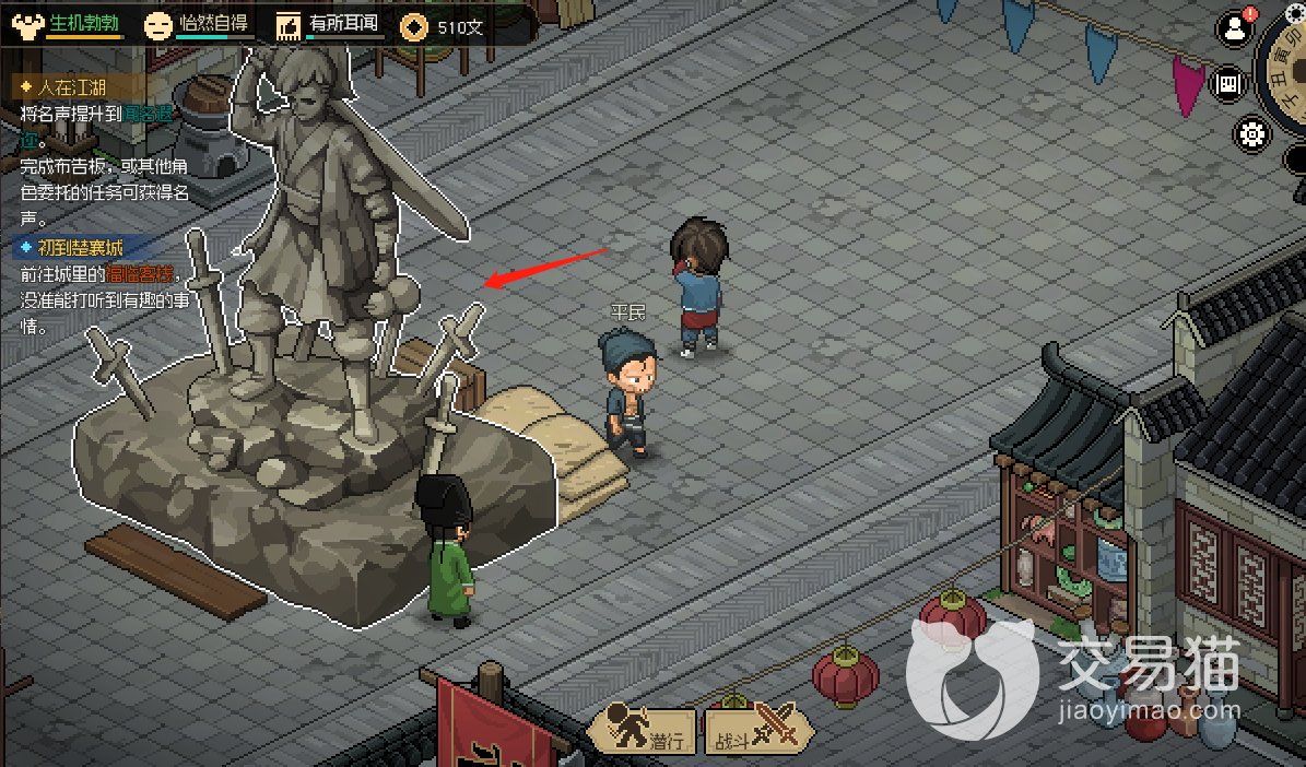 这个方法有两个前提,第一个就是需要你先来到楚襄城,这个条件还是比较容易满足的,只需要正常走剧情来到前期的新手村,之后找客栈门口的包打听交谈即可触发马车剧情,三天后马车就会到村口,之后即可乘坐马车来到楚襄城内,进城后直接就能见到人形石像。