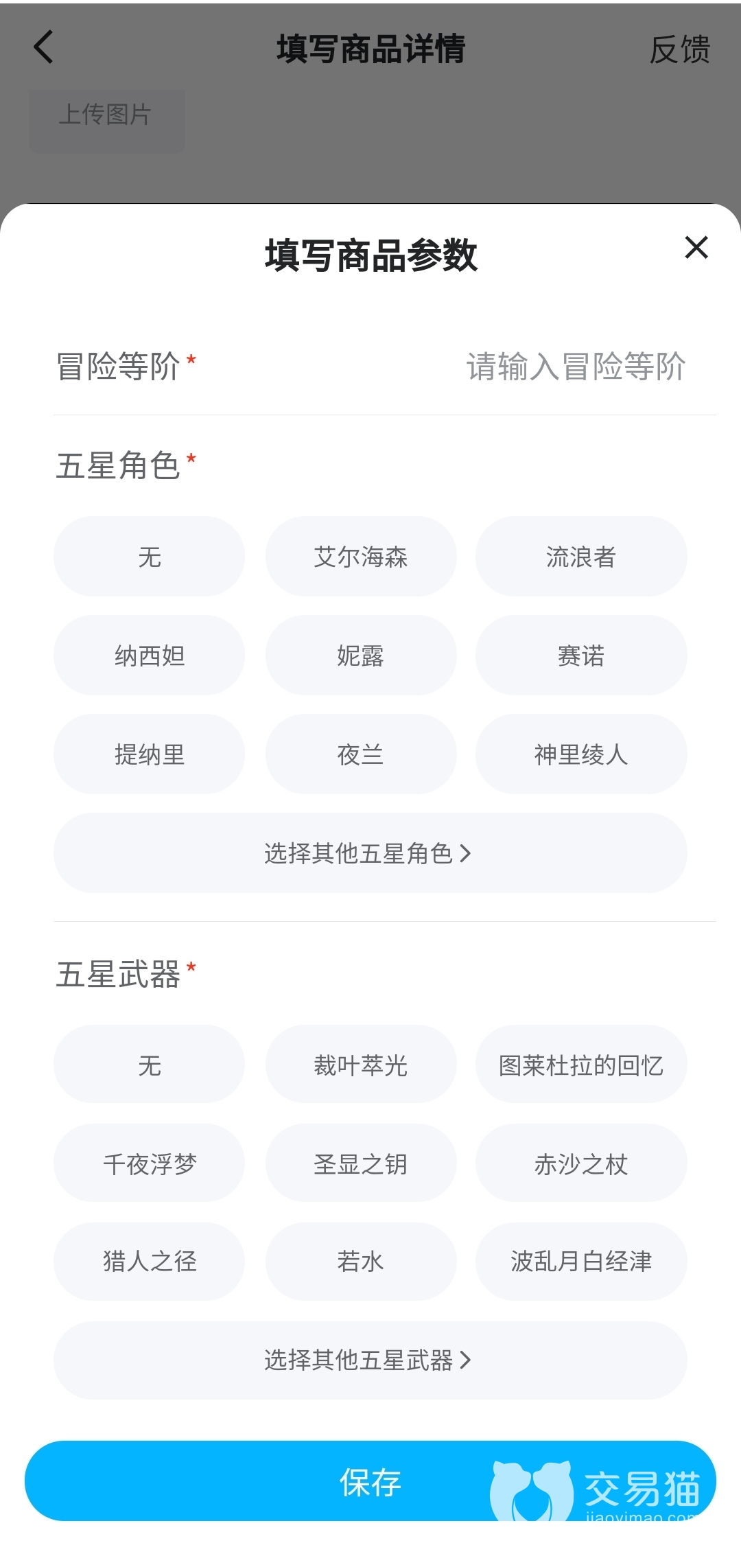 大家也清楚,“原神”中有各种角色、武器,如果想介绍清楚帐号情况也得耗费一定心力编辑。交易猫考虑到这一方面,为原神卖家准备好了上架模板,大家只需选一选即可,上架后帐号的情况介绍将井井有条地展示在详情页中。