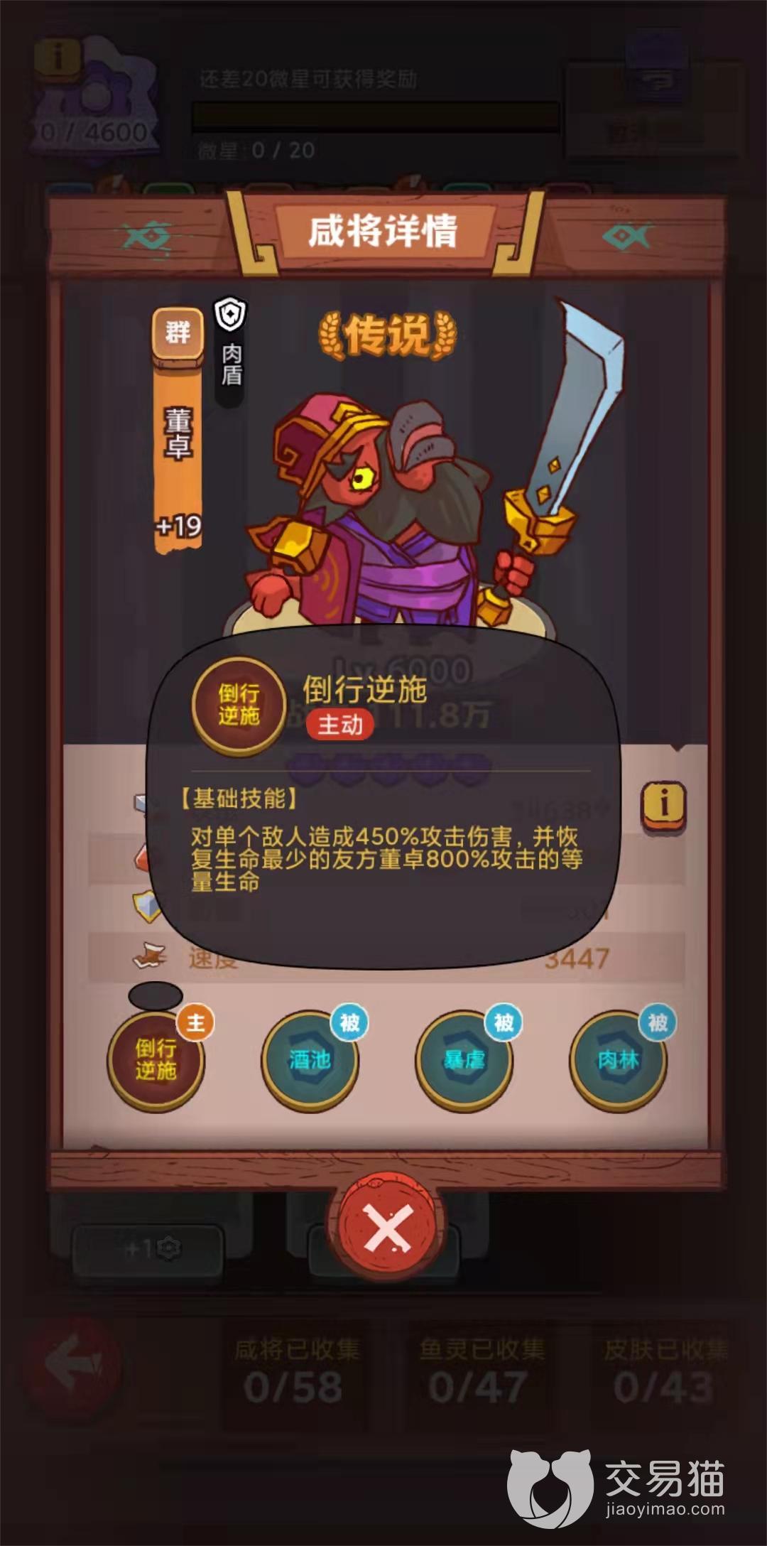在咸鱼之王这款游戏中,董卓是一个有着强力回复能力的咸将,他本身有着被攻击后回血的能力,所以经常会出现打不死的情况,那么咸鱼之王打董卓用什么阵容好呢?其实打他能用的阵容还是比较多的,那么下面小编就推荐一套个人认为最好用的,如果还不知道用什么阵容可以过来参考下哦!
