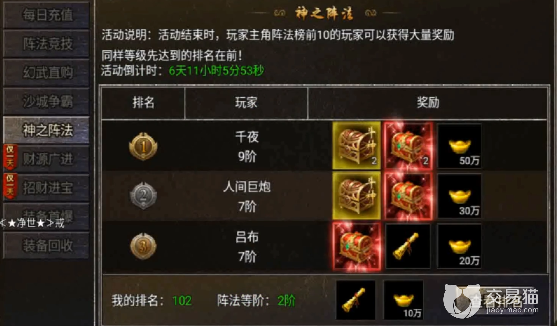 最后依靠排名的奖励也有可能拿到特殊的法宝,这个就是最强的玩家之间才有的标志了,如果你是前十的玩家很有可能获取自己专属的法宝。