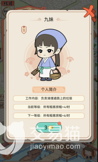 首先要了解的是,在这款游戏中,玩家将扮演一个古代的房东,通过开店、收租等方式创造营收,而不同的租客带来的收益也是不一样的,这取决于租客的属性,所以这就要求玩家需要依据租客的属性来决定是否邀请她入驻到自己的房间里,成为租客。一般情况下,小编建议玩家多招揽一些性格对钱财无感的人来当自己的租客,因为在游戏中,这种性格的租客设定给房东带来的收益,相对来说会高一些。