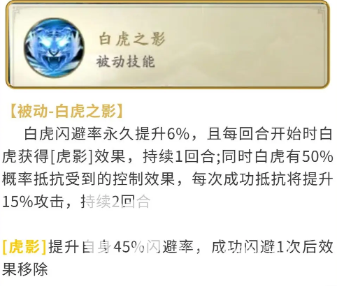 其实这个神兽的特点就是在于通过高回避率让对手神志不清,一般充当前排使用,可以说不错的血量以及自身一定的回复以及难以被命中的特性让白虎成为独树一帜的神兽,可以在各种阵容里获得发挥自己的一席之地。