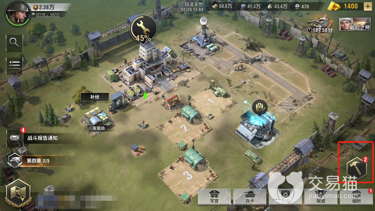 游戏内想建造基地的话需要先点击主页右下角的锤子图标,点击过后,即可开始基地里面的建造,包含其中的设施种类比较多,但大体上只分为三类,分别是“军事类”,“经济类”和“装饰物”,一般前期能够建设的主要还是经济类,这些东西能为你补给军费和木材等材料,为你之后的蓬勃发展打下基础。
