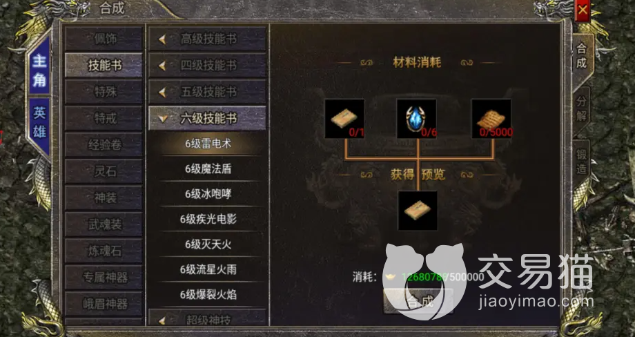 比如六级的时候就需要图示的三种材料和五十万的元宝,对于不怎么肝的玩家来说是很难承受的了得,所以就需要购买相应的礼包,如果你是不喜欢肝的玩家,这一条路子是最快的解决技能方面的方法。