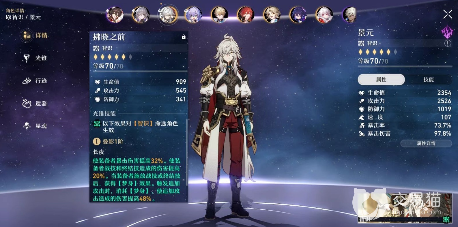 丹恒是当前最帅角色之一,使用武器也是非常有力度的长枪,自身在输出方面既飘逸又强势,尤其擅长造成单体伤害,附加额外减速能够对敌人造成有效压制。无论是前期还是中后期都有出色表现,非常实用而且适合平民玩家选择。景元最大特点是在战斗过程中可以召唤出神君帮助作战,这样召唤能力在目前游戏中是非常稀有的。而且召唤出来的神君削弱韧性能力非常出色,可以快速将对方打到弱点击破状态。自身终结技能除了是全体输出之外,还能增加神君攻击力,主人和仆人联合起来造成输出绝对是超一流水准。