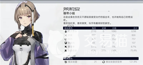 茉莉安和鸣濑晴一样家人都是军人,但和晴不一样的是茉莉安从小就体弱多病,腿部还有一些健康问题,后来因获得神格天启缘故,她的腿也恢复了,另外茉莉安有个外号叫做绷带小姐,因为她总是名莫名其妙的受伤,而且她受伤了也不轻易接受治疗的狙击手,非常有个性,她本身是爱好和平讨厌战争的,但为了自己家族利益迫不得已在战场上与敌人厮杀。