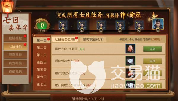 另外还有一个叫做七日嘉年华的活动,在这里面有很多的礼包送给大家,比如登录礼包,七日任务,惊喜礼包等,它是游戏中各项活动的一个大集结,其实任务这个活动大家只需要在游戏中连续登录七天,并完成每日的任务,就能获取到很多奖励了,还有神·徐庶武将送给大家哦,这个角色他在游戏中强度非常高,特别适合新手玩家,用来前期开荒。新手玩家在前期充值的话,建议可以先充值一个六元就可以了,只需要打开商船,就能带来更多的经济,然后等到大家等级达到十二级的时候再充就可以了,不需要一开始就充很多,不想氪金的玩家也可以选择不充的,不会有很大影响的。