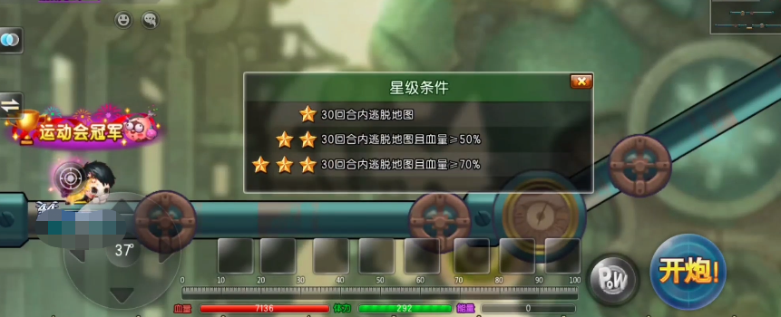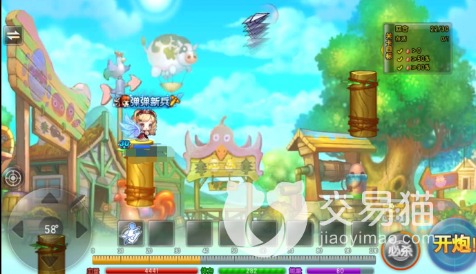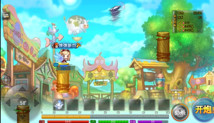 其实过这一关最好的方法并不是击败怪物,而是玩家有没有注意到头顶上的木头墩子,玩家发射炮弹进行传送,将自己传送到木头墩子上,这样别的怪物也没有办法攻击玩家了,因为玩家在天上的墩子上呆着。接着经过不断的墩子传送,玩家就会一路畅通的到达终点。但是墩子之间的距离玩家要把握好,如果墩子发射失败,玩家就会重新被传送到地上,那还是需要和怪物做斗争的。完成30回合和奶牛的纠缠之后,玩家就能够获得胜利了。