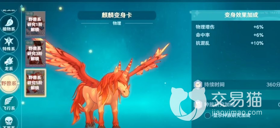 不同职业一般会搭配不同的变身,以战斧为例,倾向于研究野兽系的,最强的是麒麟,5阶解锁,可以提高6%的物理增伤和命中、10%的混乱抗性。剑士弓箭手,可以研究不死系的,比如说木乃伊,同样是5阶解锁,提供12%的必杀率,5%的必杀伤害还有10%的遗忘抗性。