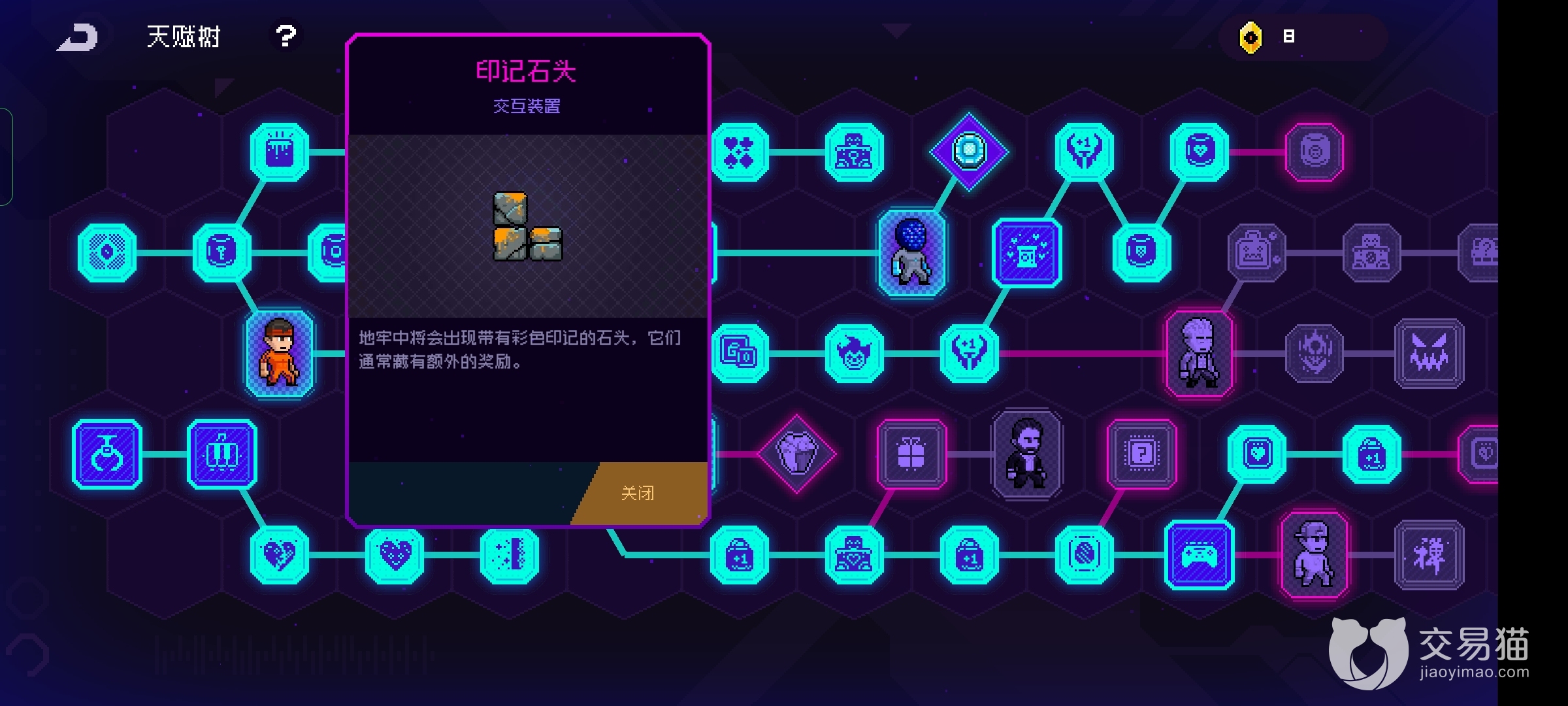 最后一个要点的就是印记石头,这个会有不同的颜色显示,使用炸弹可以打碎,随机掉落各种物品,偶尔会出非常有用的东西,相对的一些商人天赋,不是技能点很多不用点,有的时候给的东西非常没有用,还占用场地。