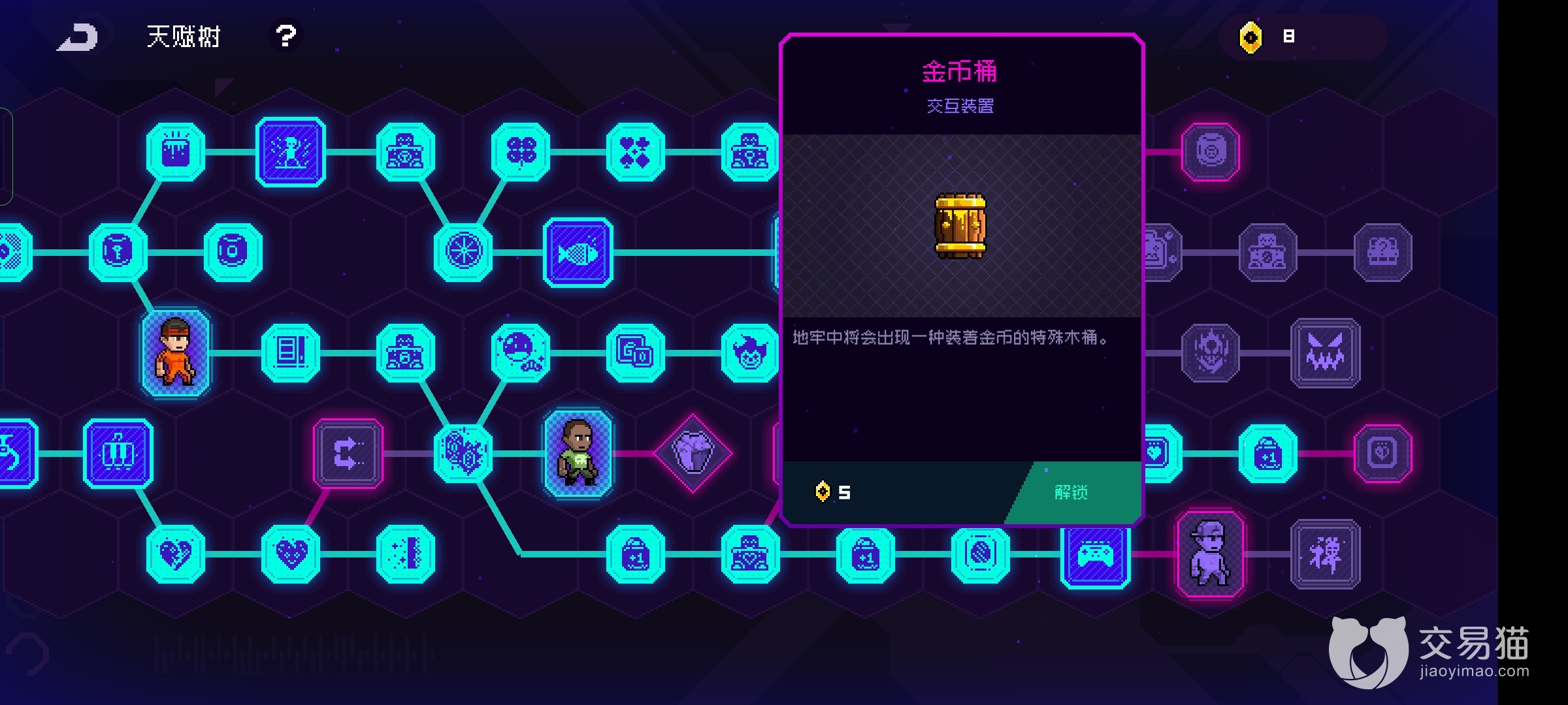 然后金币桶也是一定要点的,这个和上面的桶子一样都可以打爆,最大的区别就是会掉落金币,这些金币可以让玩家在商人这里购买更多的物品,相应的玩家也要多点商人货架数量的技能,这样会有更多概率用金币买到极品的道具。