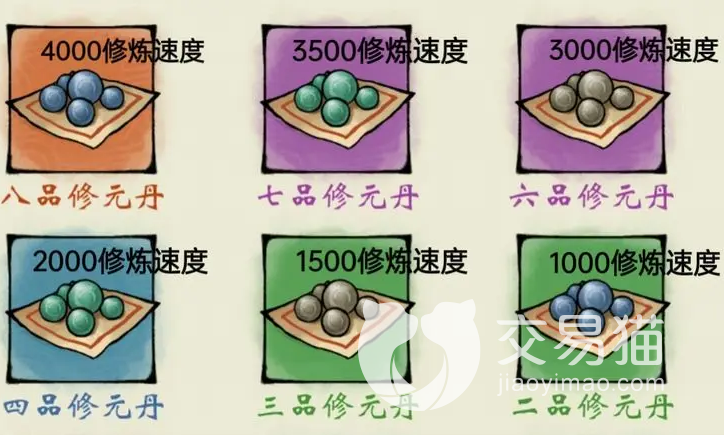 1、固定增加类型:一品修元丹500修炼速度、二品修元丹1000修炼速度、三品修元丹1500修炼速度、四品修元丹2000修炼速度、五品修元丹2500修炼速度、六品修元丹3000修炼速度、七品修元丹3500修炼速度、八品修元丹4000修炼速度、