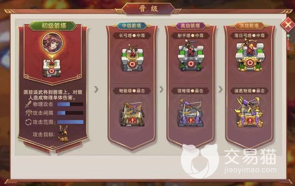 第二种是箭塔,箭塔有两种,一种是剧毒箭塔,一种是暴击箭塔,用来对付小 BOSS,另一种是能造成持续伤害的箭塔,不过这种箭塔的建造费用比较高,所以只能在后面考虑了。