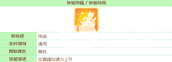 其实这是一个传说技能,按照日文的直译应该叫一阵狂风,但是繁体中文版叫做快如阵风,无论如何都是差不多的意思。这是东海帝皇的专属能力,也许你会更奇怪为什么自己两种版本的帝皇都不会这一招呢?很简单,你需要抽她的支援卡,也就是俗称的礼装,当你拥有了之后自然就能解锁了。