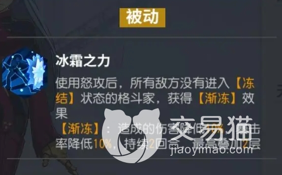 当然了虽然有一个被动也就是在没冻住人的情况让对手进入渐冻的效果,对手暴击率和伤害降低10%可以叠两层持续两回合,总体来看这个相当于小虚弱,但橘右京在这方面完全可以当做上位替代来使用,并且触发出来的数值也高多了,所以这也是用的人少的原因。