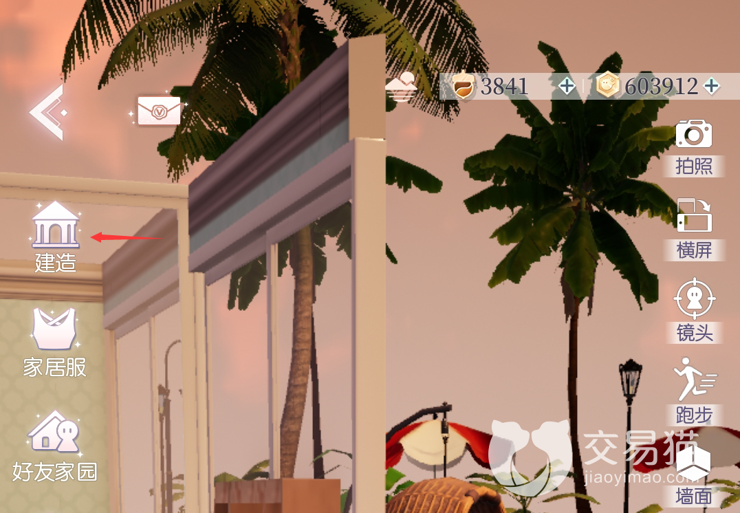 我们进入了《以闪亮之名》的主页面后,可以在最下方看到一个钥匙的标志,上面写着“家园”,我们点击进去就可以来到自己的房子,然后在我们屏幕左上角会有一个“建造”,点击它之后,我们就可以进行建造了。