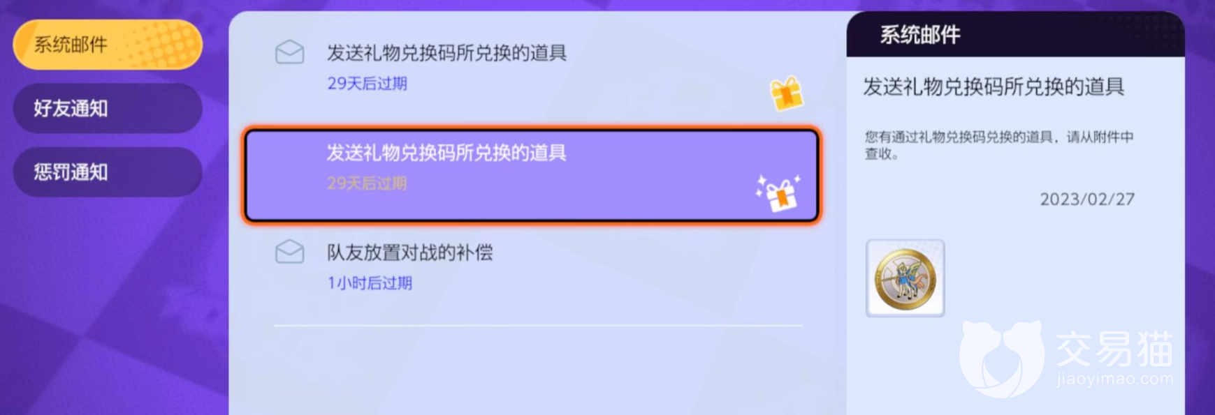 输入如果成功也是会有显示的,看到成功之后来到邮箱直接领取,网络原因不同玩家领取收到的速度会略微有所差异,等到红色的标志出现就能找到了。