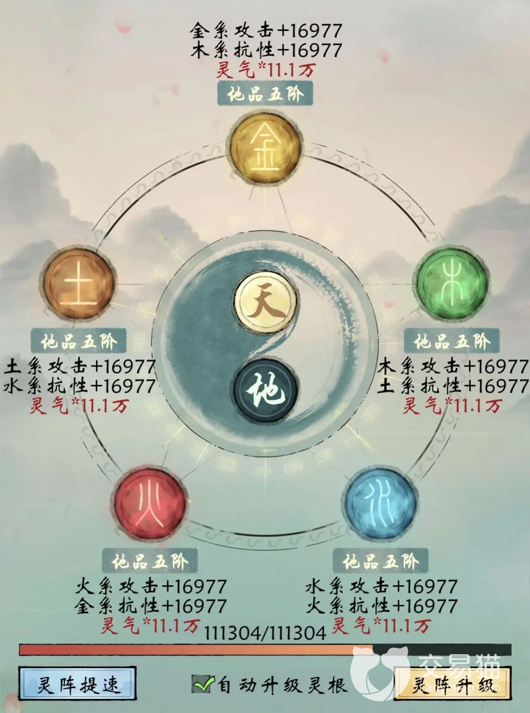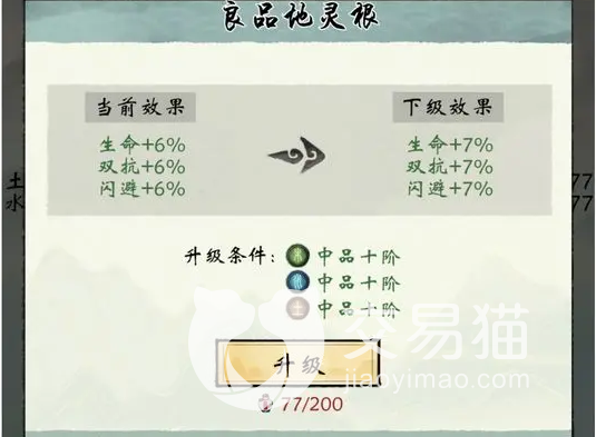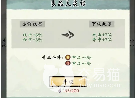 4、还有两种东西叫做天灵根和地灵根,这个是能够给玩家带来百分比属性加成的,每次升级可以带来1%的效果提升,升级所需要的条件是“五行灵根”等级,以及使用对应数量的天灵乳和地灵乳。