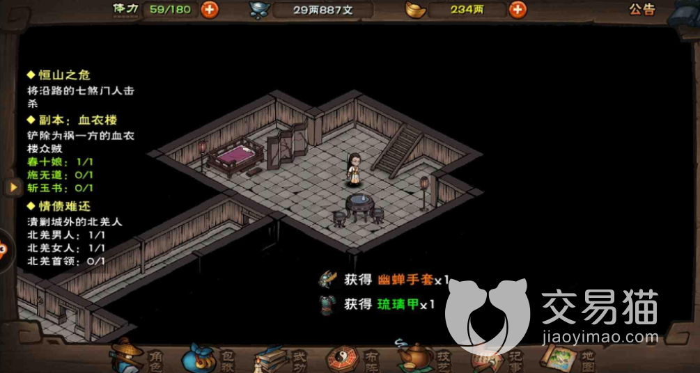 进入血衣楼以后,在血衣楼的二楼寻找到施无道,在击败施无道以后,可以获得种玉决残片一份,十份残片可以合成完整的种玉决,这就需要玩家多次进入血衣楼的副本。