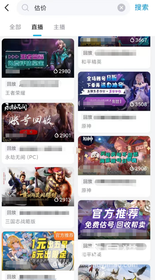 目前的交易猫可以帮助玩家们有效的进行各类游戏的估价,大家要做的是进入平台的各大直播间,利用主播提供的免费估价服务来了解自己的游戏号价值。不过直播间的游戏内容会随时进行变化,玩家们需要时刻关注一下是否有qq飞车手游的直播间即可。