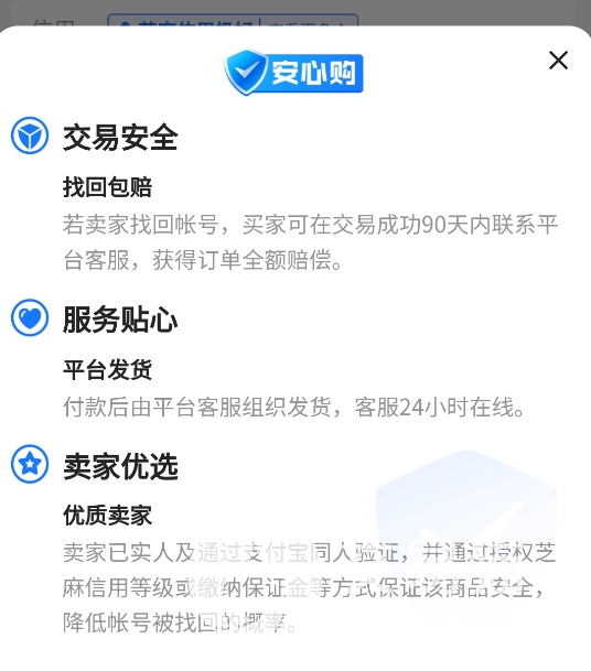 面对账号无缘无故封禁和找回时最好的做法就是理赔,因为号被找回之后再想追回的难度相当之大,此时要是有一份能够包赔的保险,就能大大减少买家自身的利益损失,就像交易猫里部分商品会附带一种叫做安心购的保险,这类保险在订单结束至九十天内可进行找回包赔的服务,在这个期间要是账号被人找回,即可通过这份保险来要求平台进行赔偿或是追回账号,还不需要买家自己花钱购买。