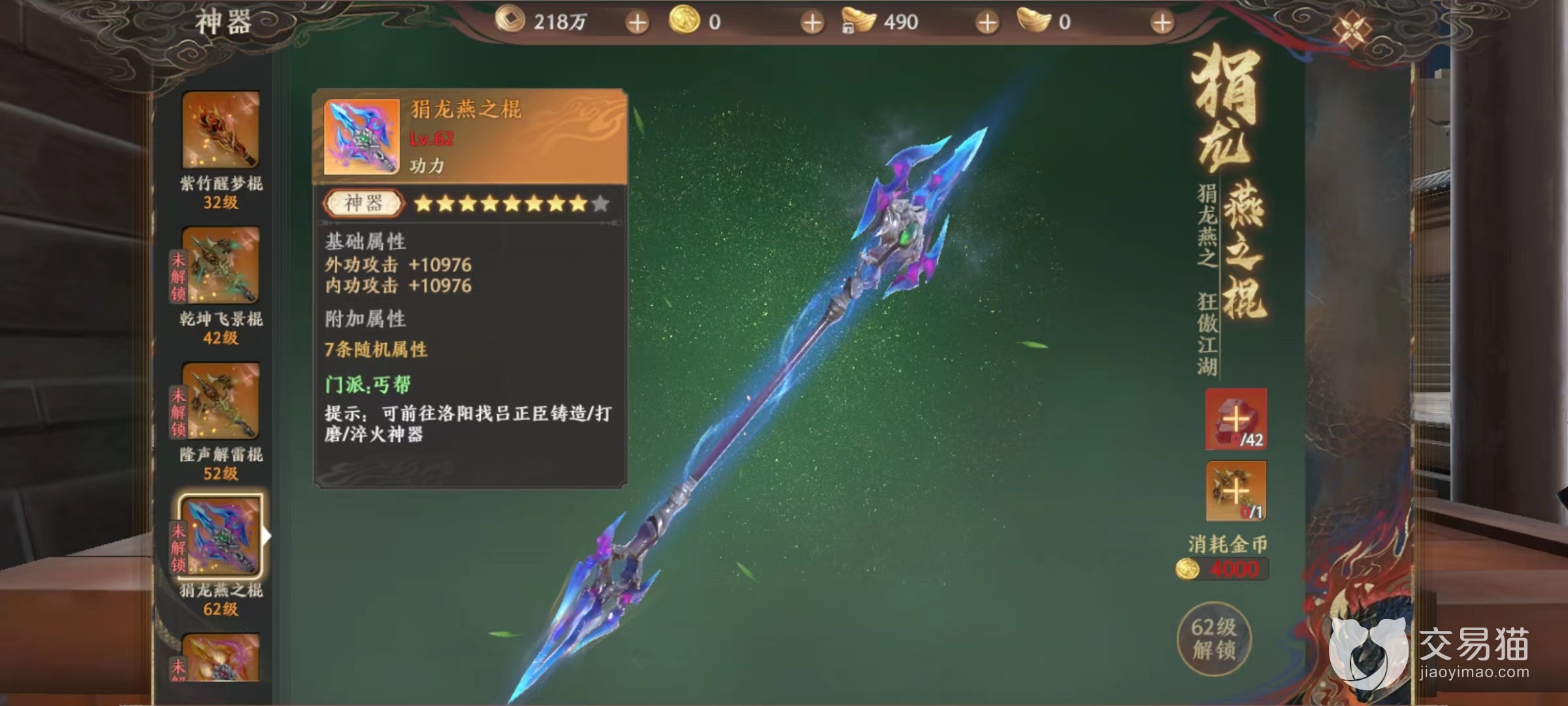 当玩家等级达到30级以后,就可以解锁获得人生第一把神器,根据所属门派不同,外观和属性上也略有差异,但是所获取方式和步骤却是相同。例如丐帮第一次可以获取的神器紫竹醒梦棍,能够提升外攻攻击内攻攻击和其他三条随机属性。这一次或许不需要额外做活动,只要跟着主线走就能逐步解锁。但是接下来就需要付出一些代价。