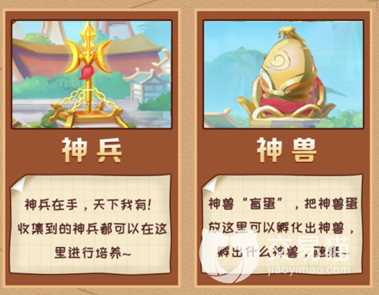 然后就是神兽屋,这个地方是专门培养神兽蛋的,玩家将四处征战得到的蛋在这件屋内进行孵化,可以获得很多种类的神兽,能提升一些属性点,而且外表也很可爱。