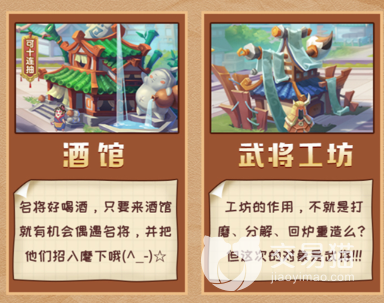 酒馆是目前唯一招募武将的地方,该建筑没有等级,也就意味着不用花费大量的资源去升级,每个时间段进入酒馆都能看到不同武将的池子,玩家们根据自己的需求选择就行。