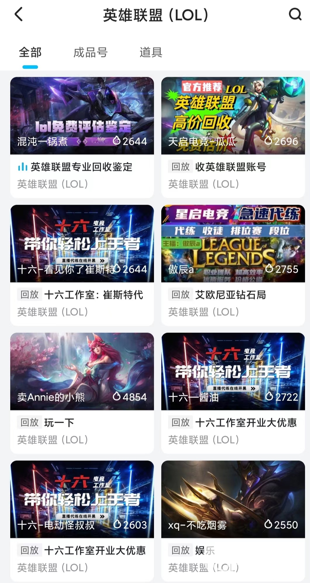 其实玩家如果不想自己费事给账号估值,可以选择在交易猫上的直播间里让主播帮玩家给账号估值,因为英雄联盟这款游戏比较热门,账号交易比较频繁的游戏,所以交易猫上的主播都比较乐意播这个有更多人看的游戏,玩家只需要把自己的账号的一些基本信息告诉主播,主播就会给玩家估出一个市场比较认可的价格。