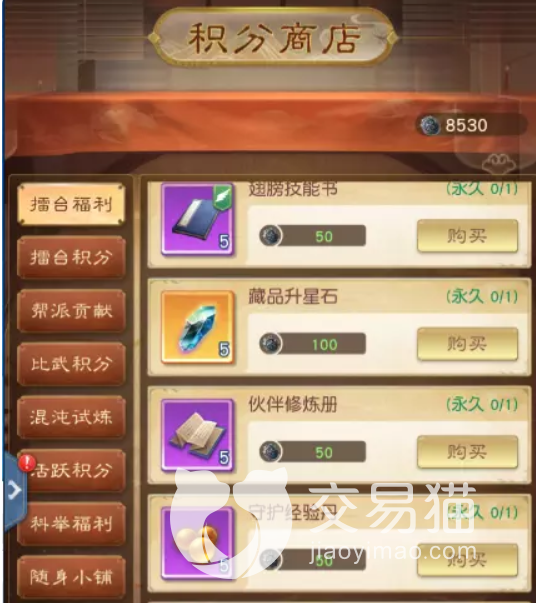 此处的积分商店里面还分为不同的类型,每个小的区域中都会有其特定的商品,其中首个就是擂台福利,刚开始的时候大家就可以尝试去抢一抢里面的“天下第一”,这是一个永久性的称谓。此处可以获取到的其他材料也是不错的。