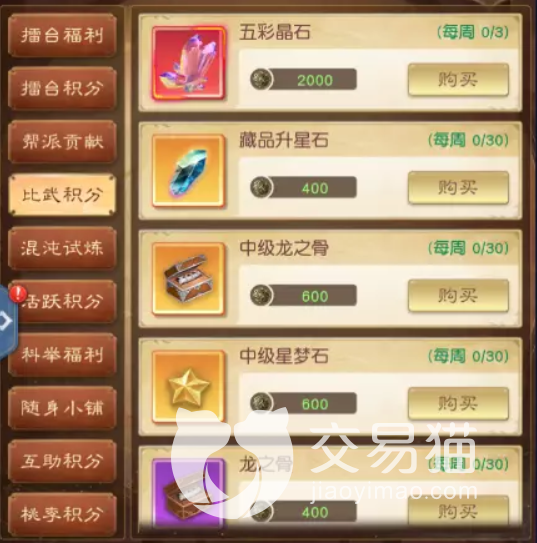 后面的那款区域是比武积分换取点,这里最值得换取的道具是五彩晶石,然后就是藏品升星石,再者是中级龙之骨和中级星梦石,除了这些之外,大家就可以根据需求换取了,毕竟每个人的需求是不一样的。