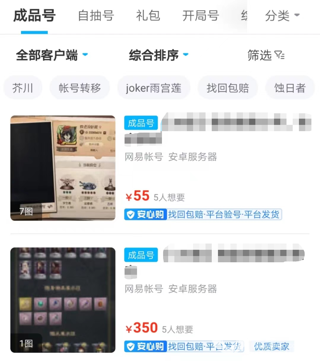 千万不要以为第五人格游戏风格看起来惊悚诡异就没人玩,其实喜欢它的玩家还是有很多的,大家都想了解一下买号第五人格平台用哪个方便?因为它账号资料是可以转移的,但是听说转移的手续特别复杂,大家担心要是买一个新号回来,资料转到一半甚至是对方拖拖拉拉不给自己转移资料怎么办,如果有一个便捷的平台能够确保交易迅速高效就好了。