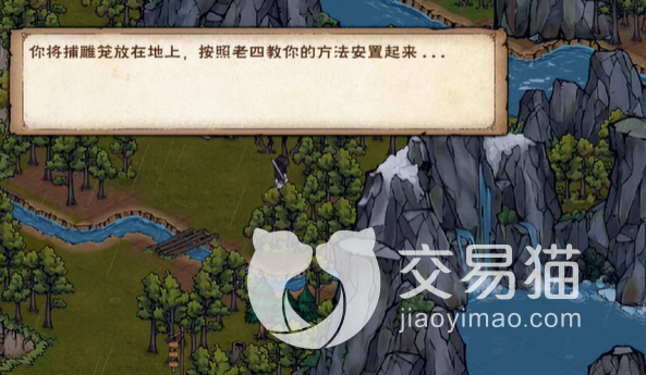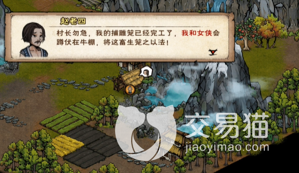 下一步大家就需要在白天的时间中去摆渡,摆渡的过程需要大家捕鱼,采集苹果,不过这两个小环节都是不一定会触发的,后面大家在行进的途中会遇到一只熊,需要玩家在上面跟熊进行对战,然后走金雕的剧情,走完之后回到刘家屯跟罗总管对话,加入队伍之后将笼子交给赵老四,利用笼子就可以抓住金雕,随后将剧情走到对战哪一步,将老四给打败就可以去空绝谷。