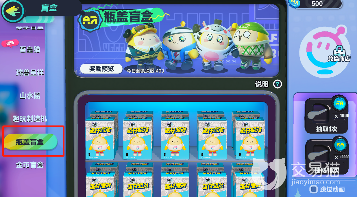 但是需要注意的是瓶盖盲盒这里面每天可以抽取的次数上限为五百,如果运气不好可能一直都抽不到,所以建议大家还是酌情进行抽取。总结来看的话,兑换商店的位置还算是比较容易找到的,而且这其中的服饰品质确实不错,同时也不乏全套的装扮,比如斑马乐乐什么的,这些都对蛋仔本身的形象有着很大改变,不过想要获取到里面兑换所需的碎片难度还是比较高的。