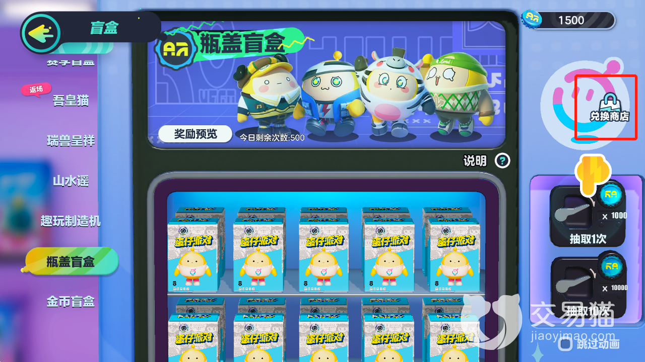 那么讲到这里,相信大家应该也都知道蛋仔派对的兑换商店在哪了吧?这个商店的位置就在瓶盖盲盒的右上角哦,大家想要去到这里的话可以按照上面的方法直接前往门口有两头柴犬的店铺,也可以直接点击屏幕上方的“盲盒”,这些方法都是比较方便的,所以各位快去游戏里试试吧!