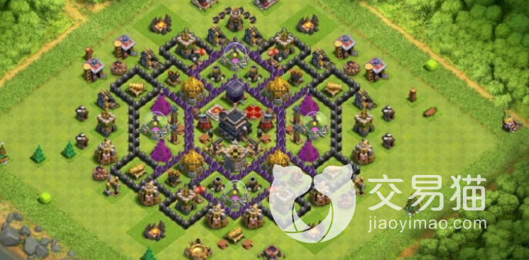 六芒星阵是一种非常灵活的防御阵型,可以有效地防御大部分的攻击。在这个阵型中,防御建筑物被放置在六个角落上,中心区域留给了陷阱和小型防御建筑物。在这个阵型中,防御建筑物可以互相配合,形成一个紧密的防御网。此外,六芒星阵也可以很容易地升级为八芒星阵,增加更多的防御建筑物。