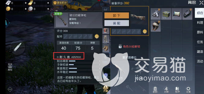 耐久在游戏里设计成了工具、武器兼有的系统,像用来采集的镐头斧子等工具会在对应使用场合比如挖矿和砍树时消耗耐久,武器则会在射击时降低耐久,使用频率越高降得自然越快。