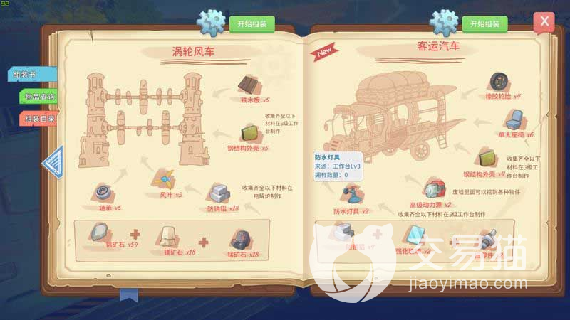 2、需要用到的道具是属于高阶的,需要进一步组合后才能得到,而且需要的量还会比较大。大家在手册中直接就能查看所需要的东西,比如防水灯具的制作材料是防锈铝、强化玻璃、旧零件。