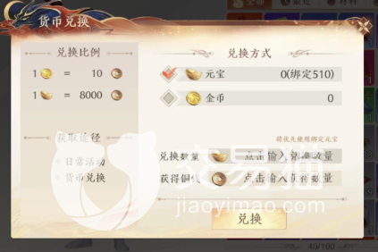 其实铜钱算是游戏中一个比较好获取的货币了,相比元宝以及金币等等货币,其实铜钱算是获取途径比较多的了,大家可以通过兑换来获取,金币以及元宝都是可以兑换成铜钱的,不过就是比率不同,铜钱以及金币就是1:10,要是铜钱跟元宝的话就是1:8千,不过这个方式是比较奢侈的,建议大家谨慎使用。