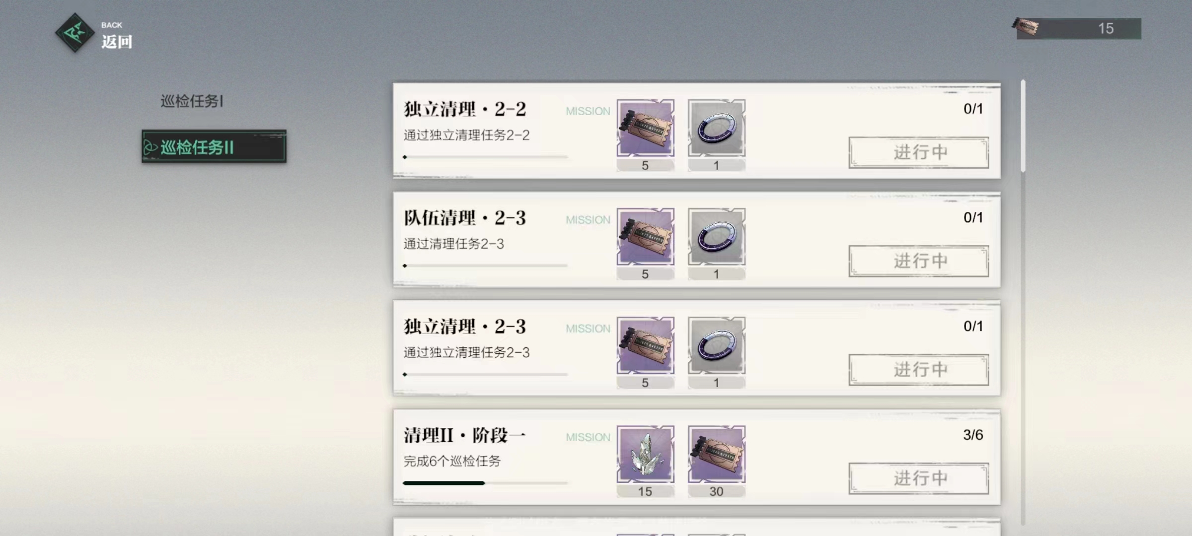 巡检任务中会遇到清理任务和独立清理任务,清理任务的解锁条件根据巡检进度解锁。清理任务是巡检队伍共通任务,队伍中任一玩家都可带队完成,独立清理任务是玩家个人任务,需要玩家独自完成。通过完成巡检任务领取任务奖励,同时不要忘记在巡检过程中也会发放巡检进度奖励。