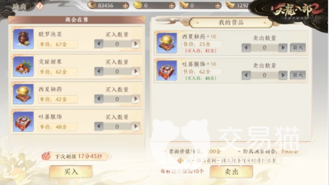 不同的地区商会中大家可以在上面看到的货物是不同的,某一个货物可能在这个商会是便宜的,到另外的商会就价格非常昂贵,玩家就可以通过这样的价格差价倒买倒卖,将货物便宜购入,价格高的时候售出,中间的差价就是大家可以获取的利润。