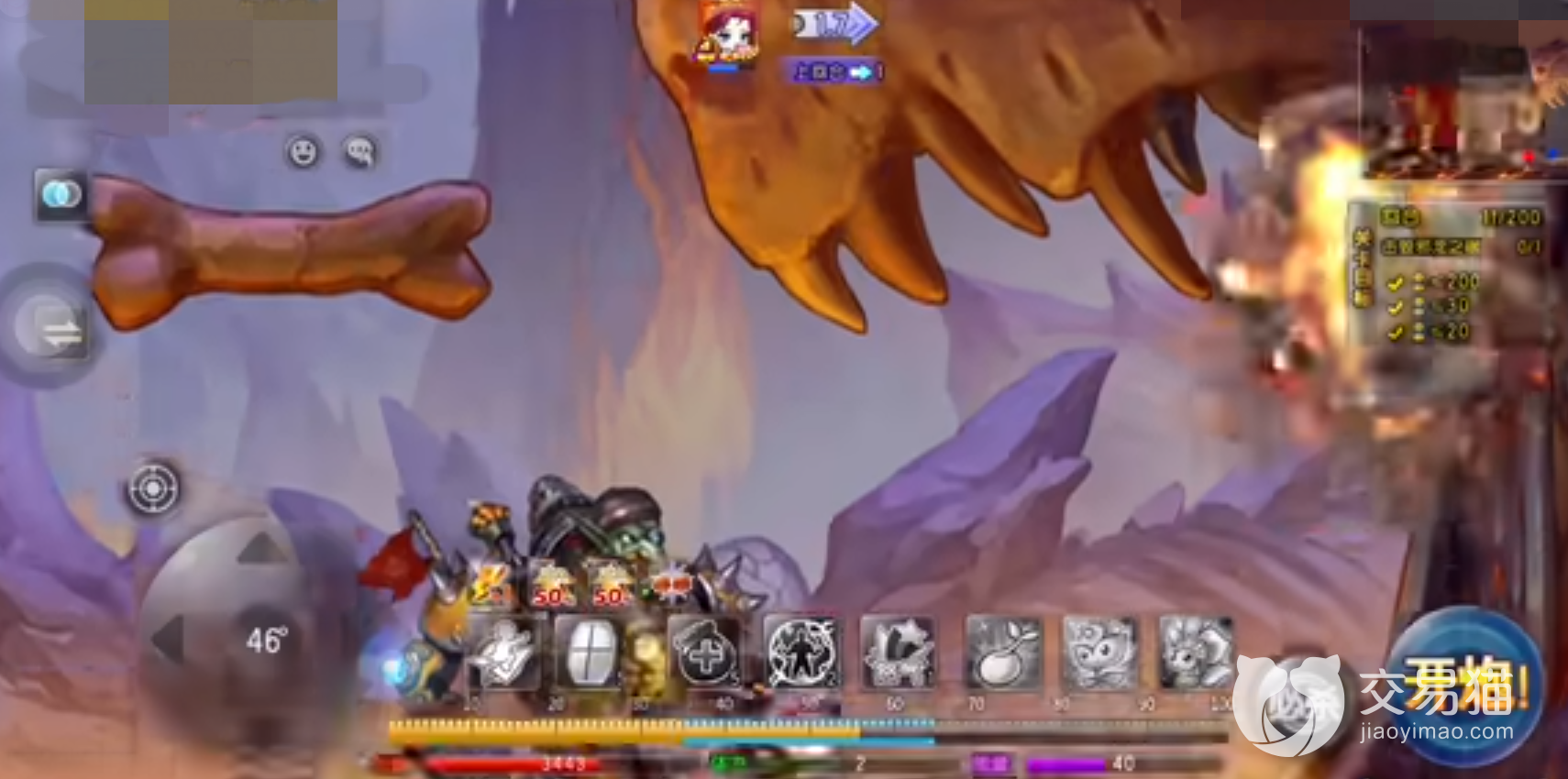 到了图示的地方需要玩家积攒足够的怒气,然后使用宠物技能再加上三连击释放炸弹摧毁它,还有记得带上干扰的技能让这个打机架不攻击各位,这里最好携带冰块。