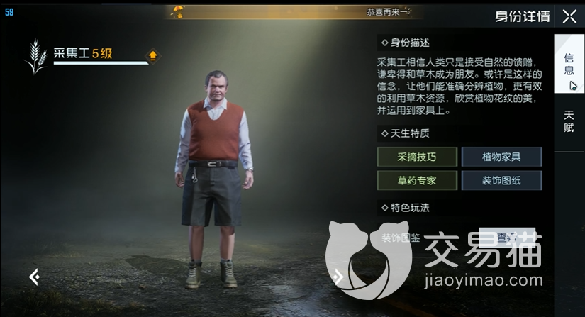 其次就是采集工,采集工其实是跟上面的矿工以及伐木工相差不大的,不过在加成上是大家在采集麻类资源的时候会用到,麻类的资源在大家制作衣服或者是家具的时候会用到,大家要是想要更多的麻类资源那么这个职业就一定要升级。