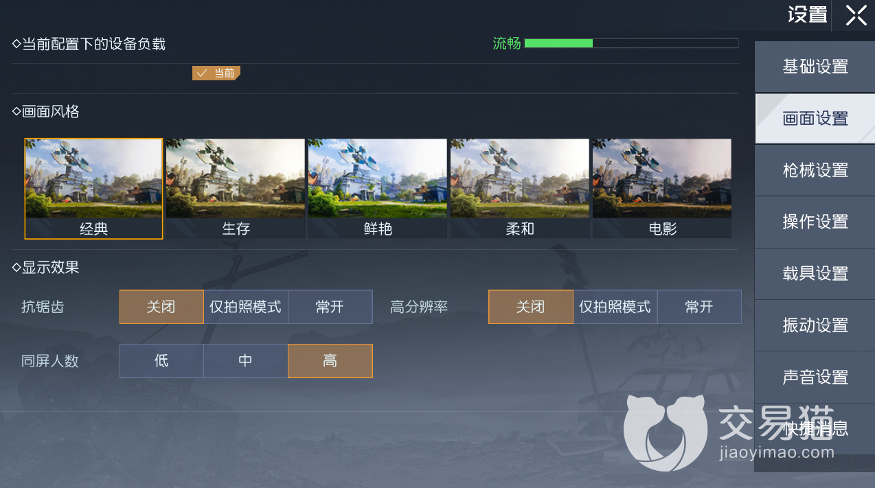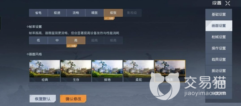 而在帧率设置中在不考虑手机发热和电量的情况下建议可以选择超高,这样对于游戏中整体的画面会更加的流畅,因此对于玩家的操作会有一个较大的提升。但是对于玩家的设备要求会比较高,因为配置不够的情况下会导致手机过于发烫而且耗电量是非常恐怖的。